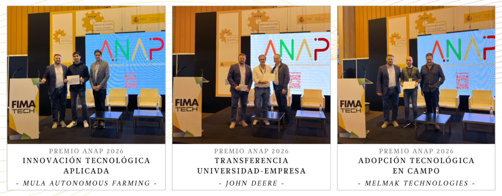 - MULA Autonomous Farming – Premio a la Innovación Tecnológica aplicada, por su labor destacada en el desarrollo e implementación de soluciones de Agricultura de Precisión con impacto real en la digitalización y la sostenibilidad del sector agroalimentario.